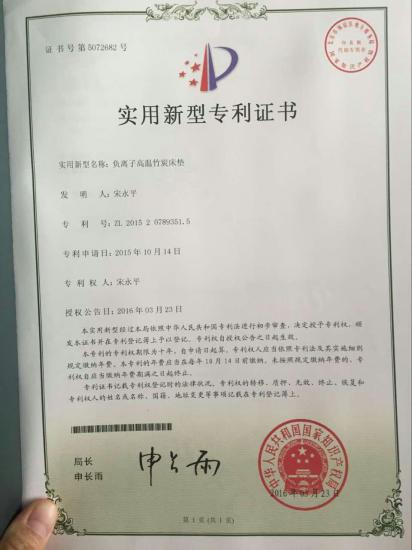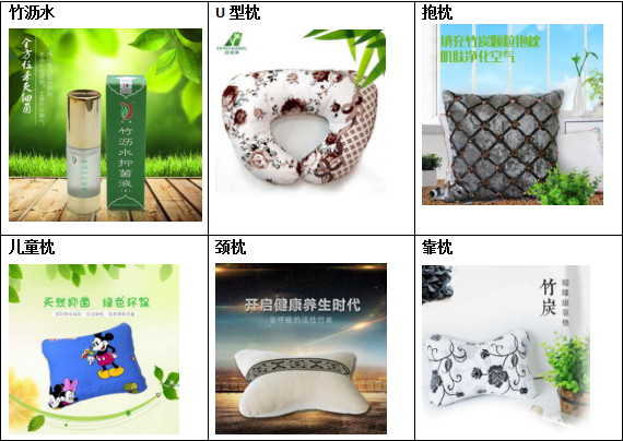 公司现有净化空气和改善血液循环的2.5亿级负离子发生器;改善身体亚健康状况的负离子养生桶;杀菌止痒的竹沥水;高品质竹炭内芯净水器;具有祛湿、杀菌、改善睡眠的竹炭床垫;量子远红外线与竹炭结合的功能产品以及竹炭日用护肤品,其中竹炭床垫获得国家专利。