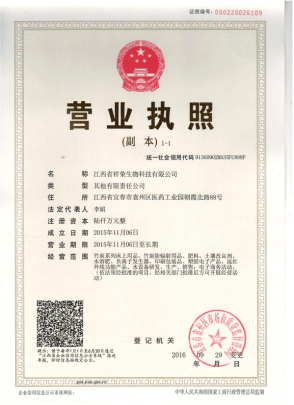 江西省祥荣生物科技有限公司执照