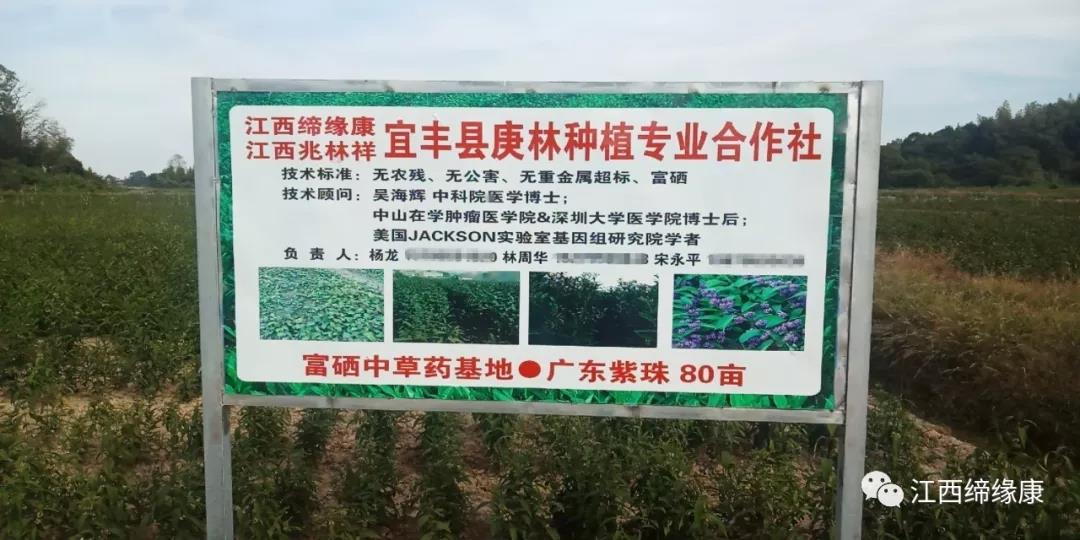 江西缔缘康生物科技有限公司、江西兆林祥公司与宜丰庚林种植专业合作社、宜丰珠盛种植专业合作社合作种植富硒中草药●广东紫珠160亩。