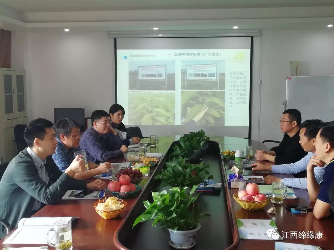 2019年10月24日中科院江西中心主任刘杰院士莅临公司指导(图上)江西缔缘康董事长及相关技术人员向刘杰院士和各位领导汇报种植富硒中草药试验效果。缔缘康董事长及员工和刘杰院士、领导合影留念(图上)江西缔缘康董事长与刘杰院士合影留念